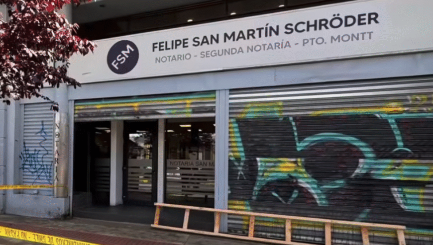 Desconocidos ingresaron a la notaría San Martín, el jueves de la semana pasada, ubicada en calle Urmeneta, a un costado del Banco de Chile en Puerto Montt, desde donde sustrajeron el sistema de cámaras y alarma, además de provocar daños en las puertas de las bóvedas.