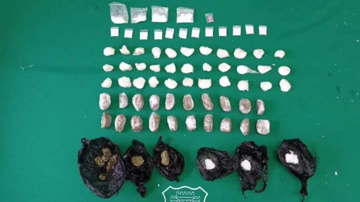 En total se le incautaron 76 envoltorios con cinco diferentes tipos de sustancias: 204,6 gramos de pasta base; 161,7 gramos de cannabis sativa; 32,6 gramos de cocaína; 13,1 gramos de ketamina y 1,1 gramos de comprimidos psicotrópicos.