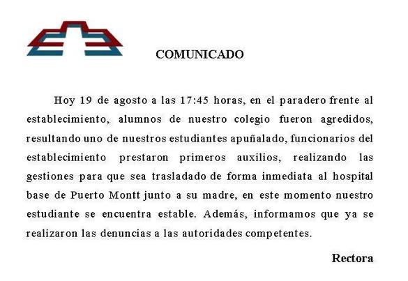 Un nuevo hecho de violencia ocurrió en el sector de Alerce, el que ha generado preocupación entre apoderados y vecinos, luego de que un alumno del Instituto Inglés Antuquenu fuera apuñalado frente al establecimiento educacional durante la tarde del martes 19 de agosto.