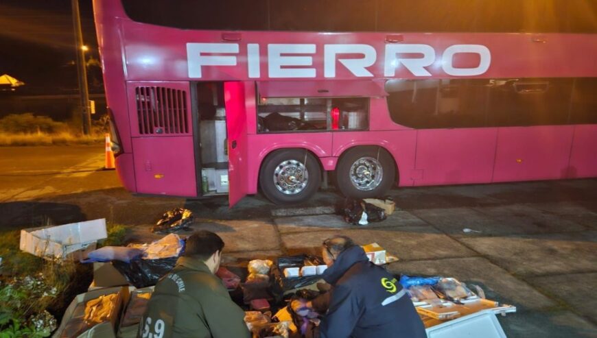 El procedimiento se llevó a cabo tras la interceptación de dos vehículos menores y un bus de transporte de pasajeros que realizaban el traspaso de carga en condiciones irregulares.
