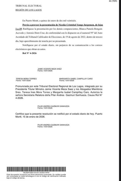 La causa, ingresada el 13 de enero de 2026 bajo el Rol N.º 4-2026, fue declarada admisible tras cumplir los requisitos formales, ordenándose a los reclamantes ratificar la presentación. Con ello, se dio inicio a un proceso que podría derivar en la destitución del edil.