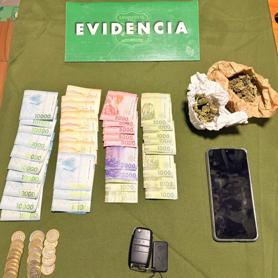 Tras la revisión del vehículo, Carabineros encontró bolsas con una sustancia vegetal de color verde, similar a marihuana. Posteriormente, personal especializado realizó las pruebas de campo correspondientes, confirmando que se trataba de 300 gramos de cannabis sativa.